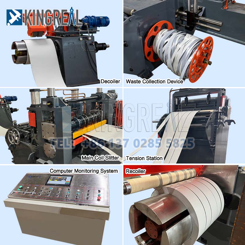 KINGREAL STEEL SLITTER 850MM Steel Coil Slitter Machine refererer til behandling af metalspoler op til 850MM brede. Ud over bredden på 850 MM kan KINGREAL STEEL SLITTER metalspoleskæringsmaskinen også behandle spoler i bredder på 1350 MM, 1600 MM og 2000 MM, med tykkelser, der typisk spænder fra 0,3-3 MM, og kan tilpasses til at opfylde kundens produktionskrav.